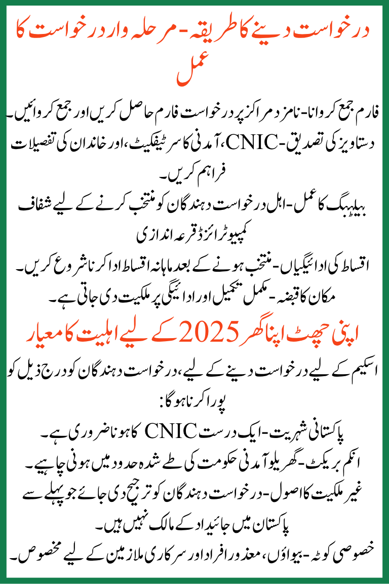 Eligibility Criteria for Apni Chhat Apna Ghar Price Easy Installment 2025
