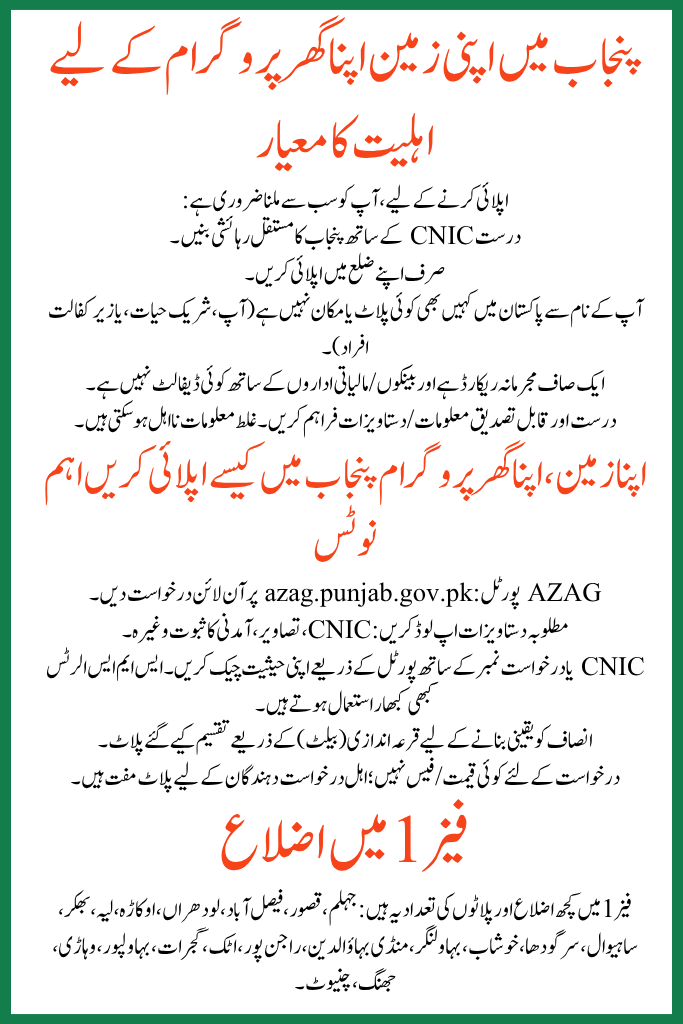 How to Apply Apni Zameen, Apna Ghar Program in Punjab Important Notes