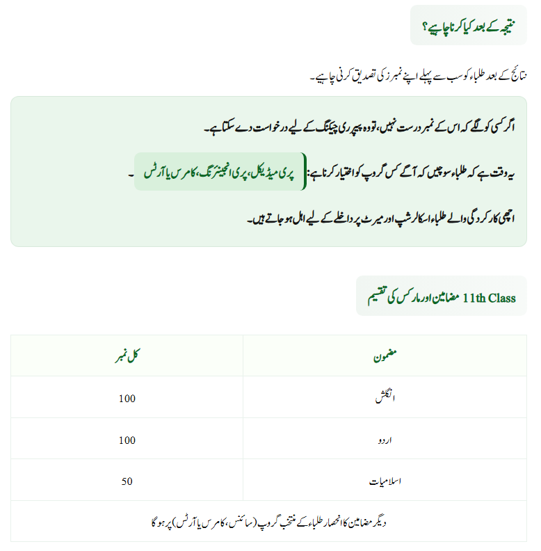 Once the result is out, students should first verify their marks carefully. If there are mistakes, they can apply for rechecking. More importantly, this is the right time to decide the next academic path—Pre-Medical, Pre-Engineering, Commerce, or Arts. Students with good marks can apply for scholarships and merit-based admissions in top colleges and universities.