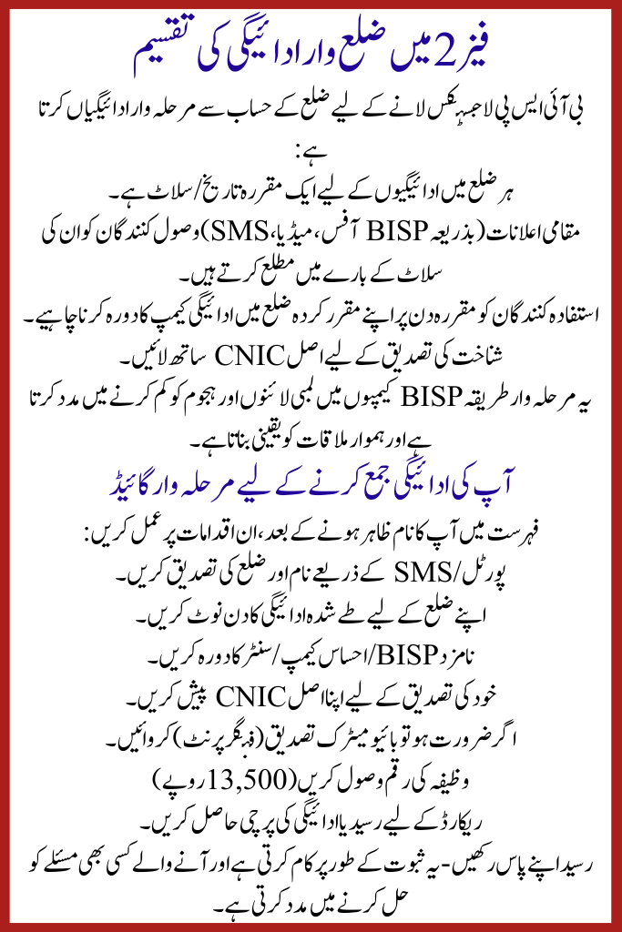 - This phased method helps reduce long lines and crowding at BISP camps and ensures smoother meting out.