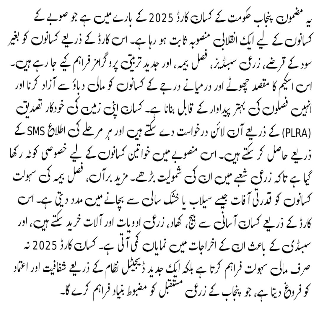 The CM Punjab Kisan Card 2025 is a revolutionary step toward empowering Punjab’s farmers through technology, financial support, and transparency. It simplifies the farming process, saves costs, and secures the future of agriculture in the province.