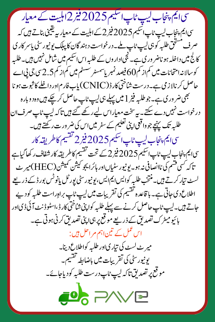 CM Punjab Laptop Scheme 2025 Phase 2 Eligibility Criteria