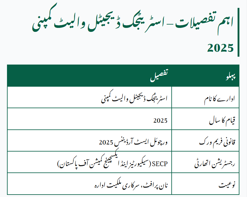 The Strategic Digital Wallet Company is a non-profit, state-owned enterprise (SOE) created to handle and secure Pakistan’s official digital assets.