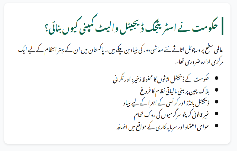 The main reason behind this move is to bring security, structure, and transparency to the management of public-sector digital assets. Until now, Pakistan did not have a unified system to handle digital financial assets or blockchain-based government instruments. The new company will now fill that gap by creating a secure digital infrastructure.