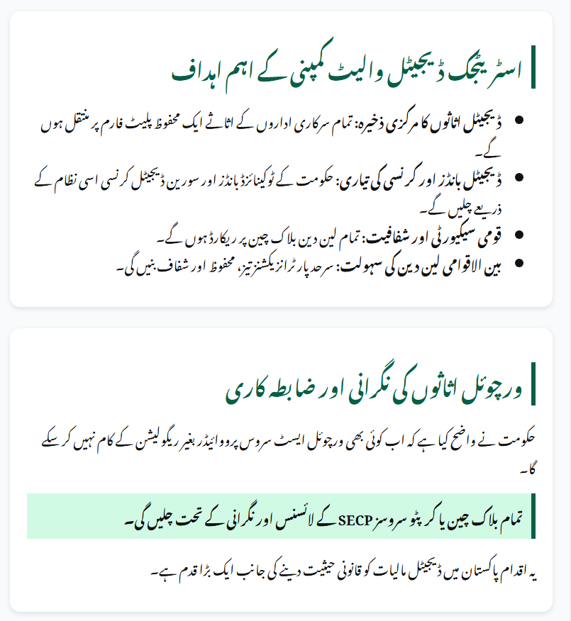 The goal is to make sure that government-owned digital assets — such as tokenized bonds, sovereign digital currencies, and blockchain transactions — are managed securely and legally under Pakistan’s financial system.