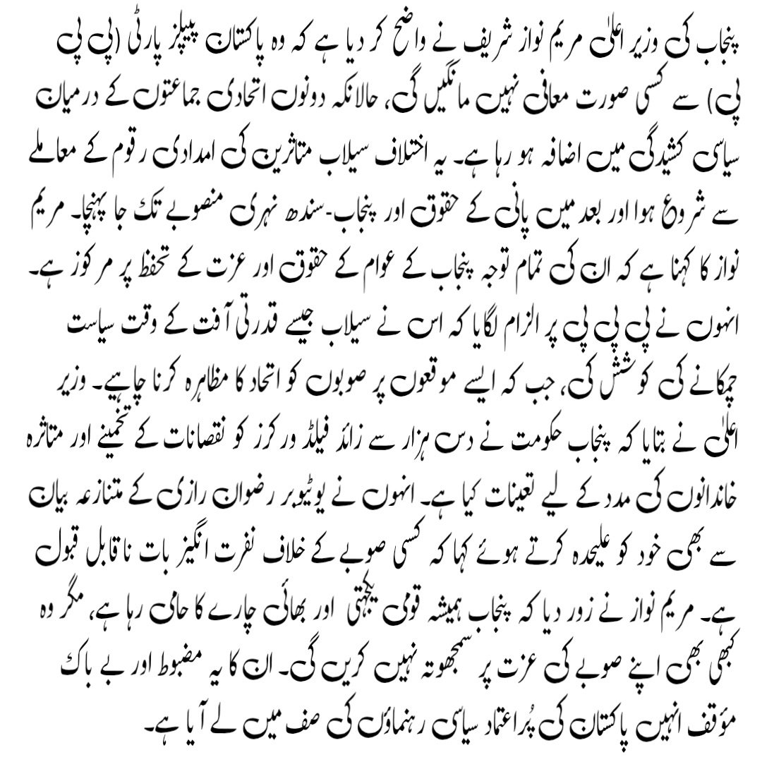 Punjab Chief Minister Maryam Nawaz Sharif made it clear that she would never apologise over her recent remarks that deepened tensions between her party, the PML-N, and its coalition partner, the PPP. She stated that her words were not an attack but a defense of Punjab’s integrity and her people’s rights.