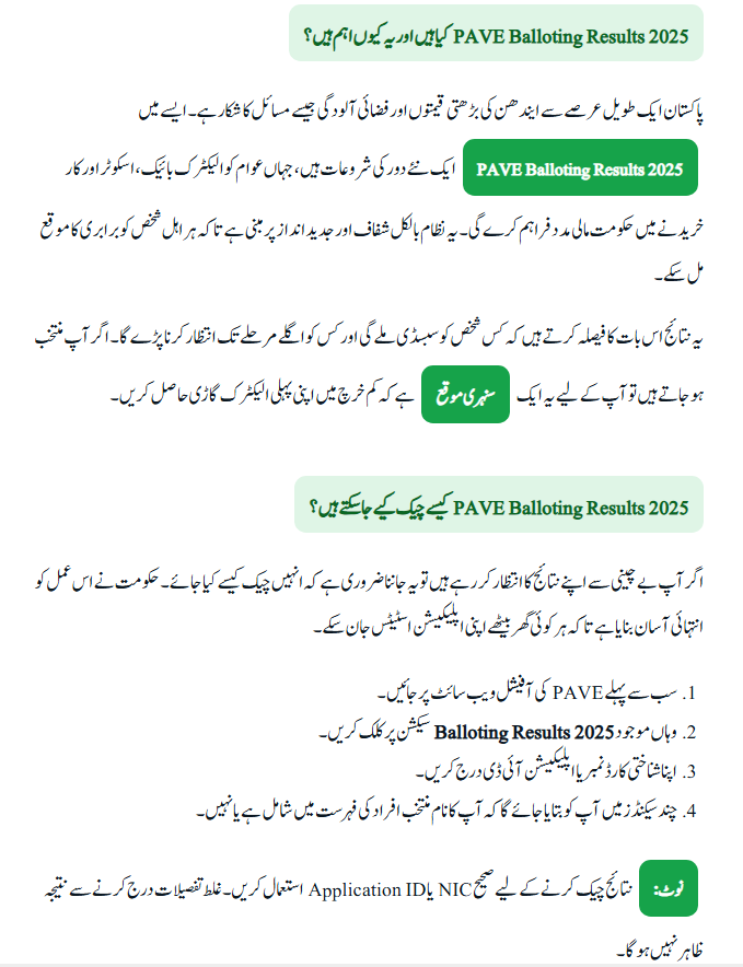 For Pakistani citizens, the release of the PAVE Balloting Results 2025 is big news. These results will decide who qualifies for the subsidy and who can take the first step towards owning an eco-friendly vehicle.