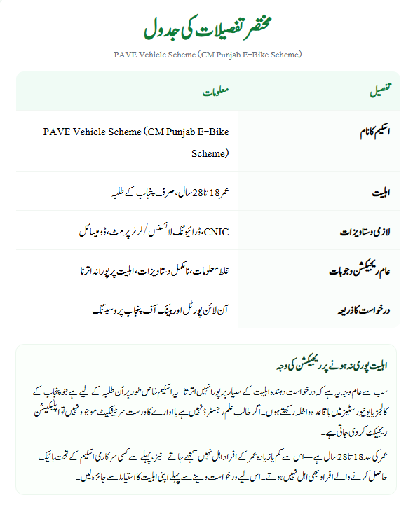 The People Rejected for the PAVE Vehicle Scheme is a golden opportunity for students in Punjab to get affordable electric bikes. But rejections happen when applicants don’t meet eligibility rules, provide incomplete documents, or make mistakes in their forms. A rejection doesn’t mean the end—it’s simply a reminder to prepare better next time.