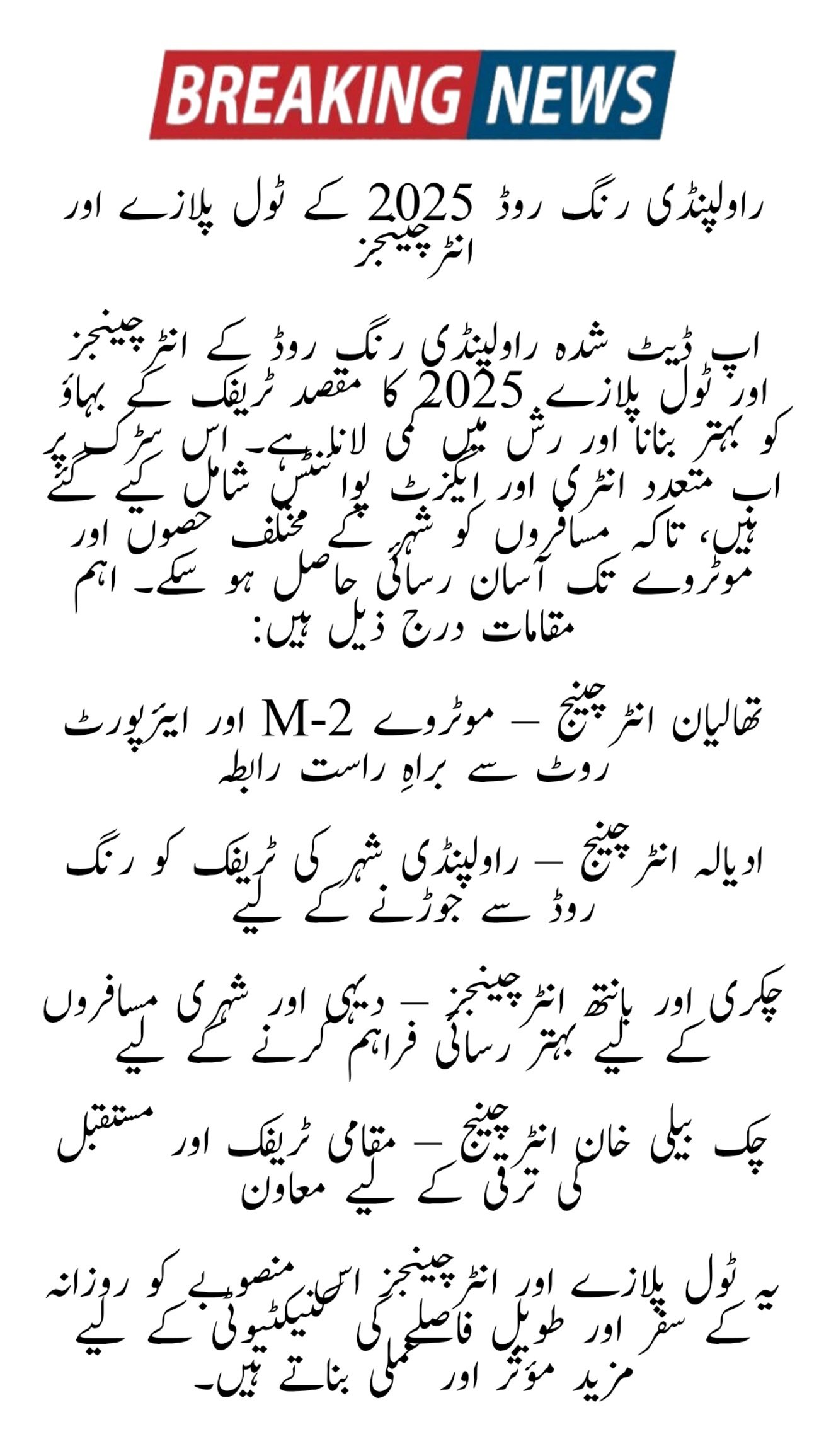 Toll Plazas and Interchanges in Rawalpindi Ring Road 2025