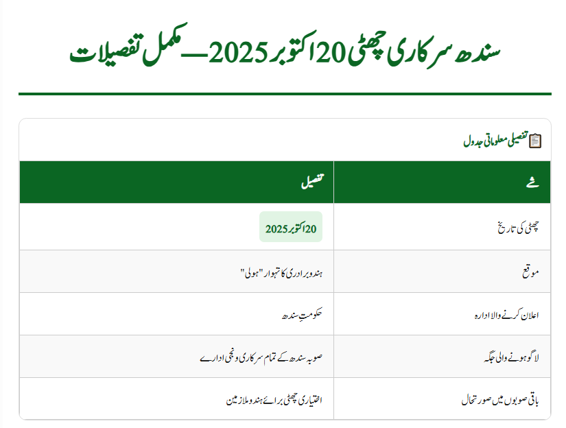 This announcement is more than a schedule update — it’s a symbol of respect for diversity. By observing the Public Holiday October 20, 2025, the government of Sindh has highlighted Pakistan’s spirit of religious coexistence.