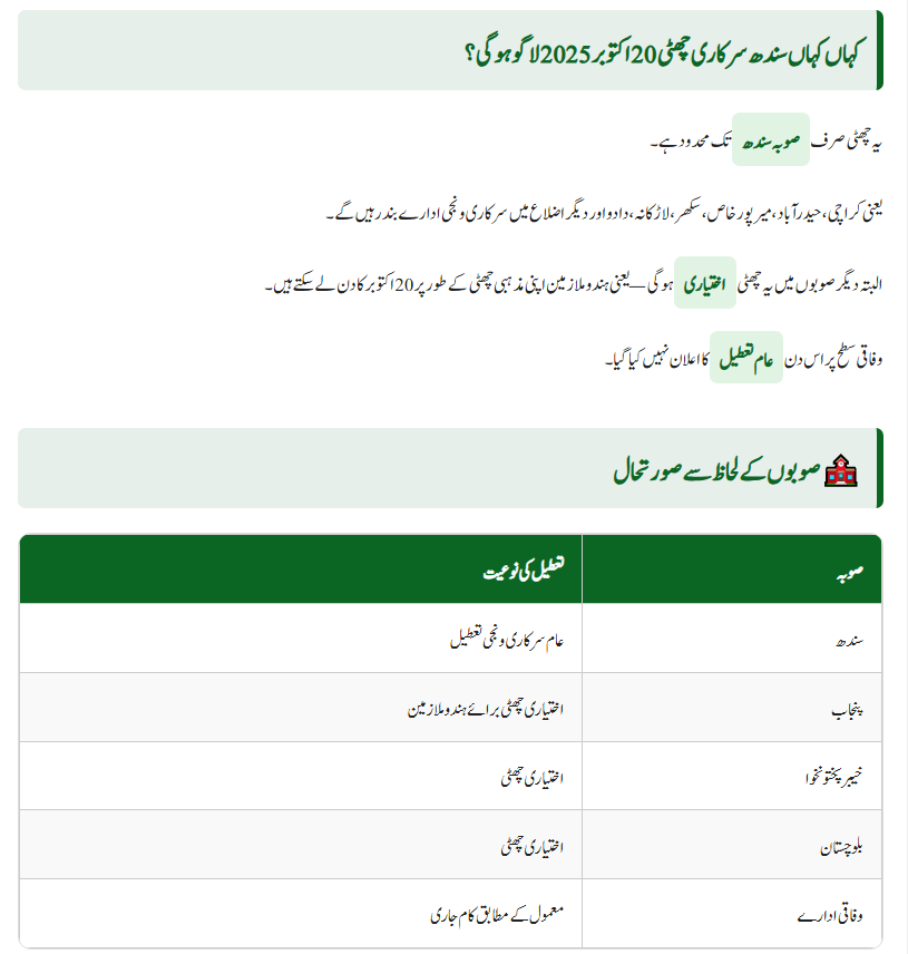 Could Sindh Public Holiday October 20, 2025 Inspire Other Provinces?