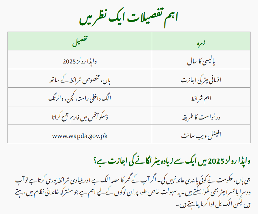 But in 2025, the Power Division and WAPDA officially clarified the rules. According to the latest update, multiple electricity meters are still allowed under WAPDA Rules 2025, as long as basic requirements are met.